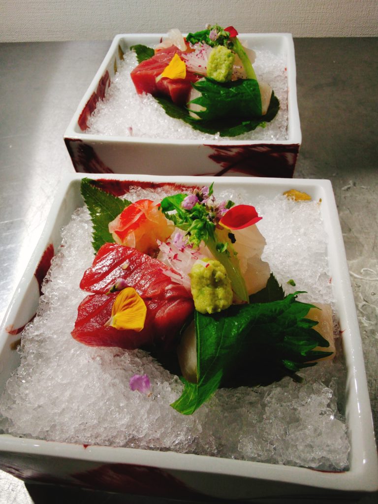 【華盛り組肴、お造り、ご飯、お椀、デザート】